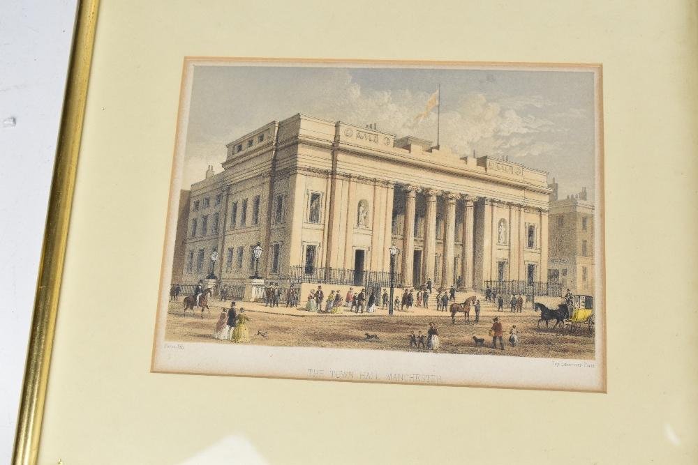 Lot 1116 of 1211: Eight topographical coloured and monochromed prints and engravings of the North West including Manchester landmarks, all framed and glazed (8).