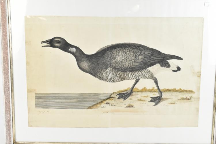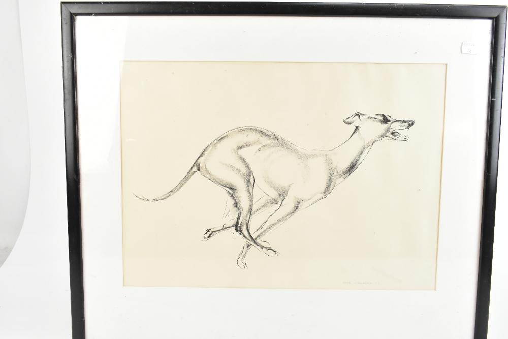 Lot 1119 of 1211: Three 19th century animal engravings comprising 'This portrait of the giraffe accompanied by his keeper taking an airing at Cumberland Lodge [...] is by gracious permission dedicated by his Majesty's most devoted faithful & very humble servant, A.B. Van Warrell', pub.1827, the image 32.5 x 28.5cm, a French copper plate engraving 'Lima Catta le Maki Mococo' by Muger after Maréchal and a hand coloured Barnacle goose example signed by Hayes, also a lithograph of a greyhound after John Skeaping, all