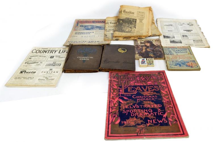 Lot 689 of 1789: A collection of cigarette cards to include Will's, Players, Gallagher's, Black Cat and further examples depicting flora and fauna, military personalities, etc with a number of B.D.V cigarettes silk cards, also magazines and newspapers to include The Illustrated London News, May 15th 1915 and Holly Leaves 'The Christmas Number of the Illustrated Sporting and Dramatic News' December 1911.