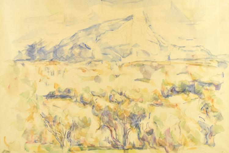 Lot 29 of 2039: AFTER PAUL CEZANNE; colour print, Montagne Sainte Victoire, with blind stamp lower right, 35.5 x  54cm, framed and glazed.