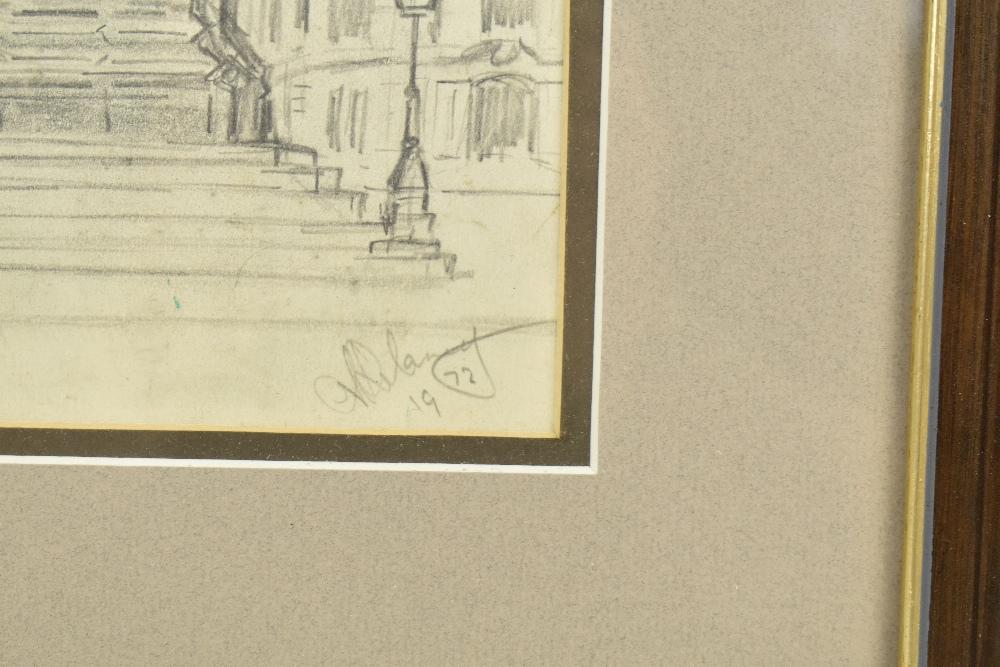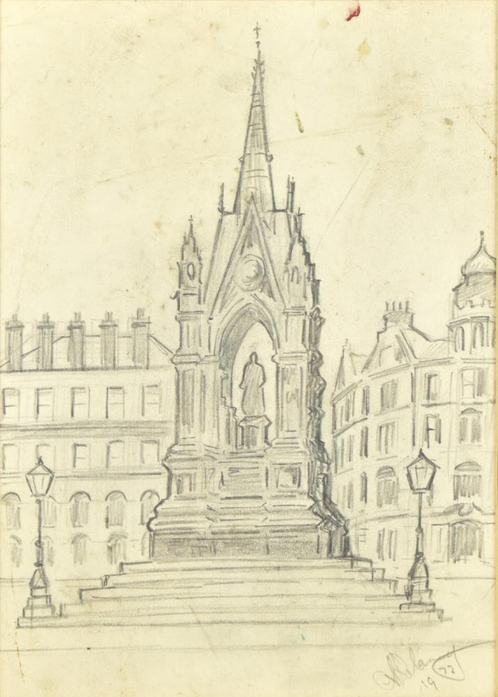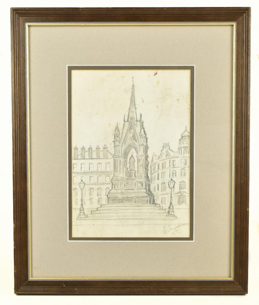Lot 82 of 2039: ARTHUR DELANEY (1927-1987); pencil sketch, 'The Albert Memorial, Albert Square, Manchester', signed and dated 1972 lower right, 26 x 18cm, framed and glazed. (D)