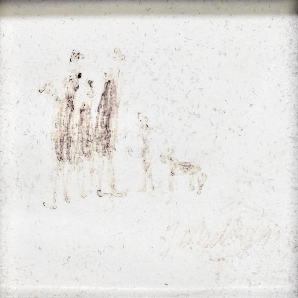 Lot 85 of 2039: JOHN THOMPSON (1924-2011); group series, ink drawing depicting four figures and a dog, signed, 4.5 x 4.5cm, framed. (D)