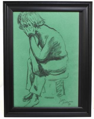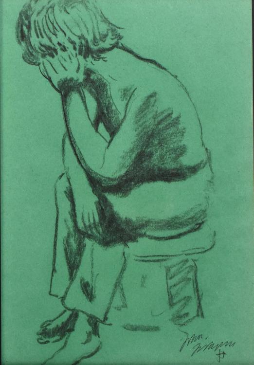 Lot 86 of 2039: JOHN THOMPSON (1924-2011); pencil drawing, 'Scot Seated', signed lower right, 39.5 x 28cm, with a photograph of Mrs Thompson holding the image. (D)