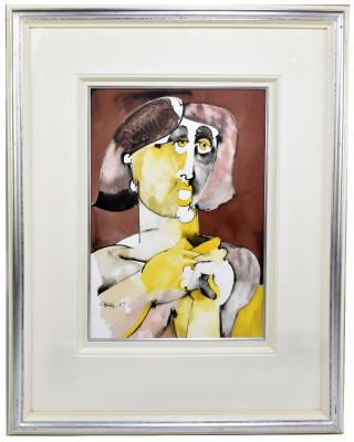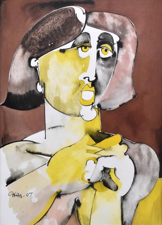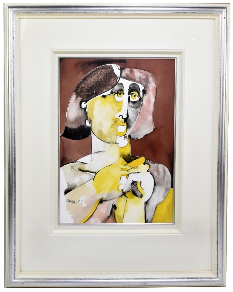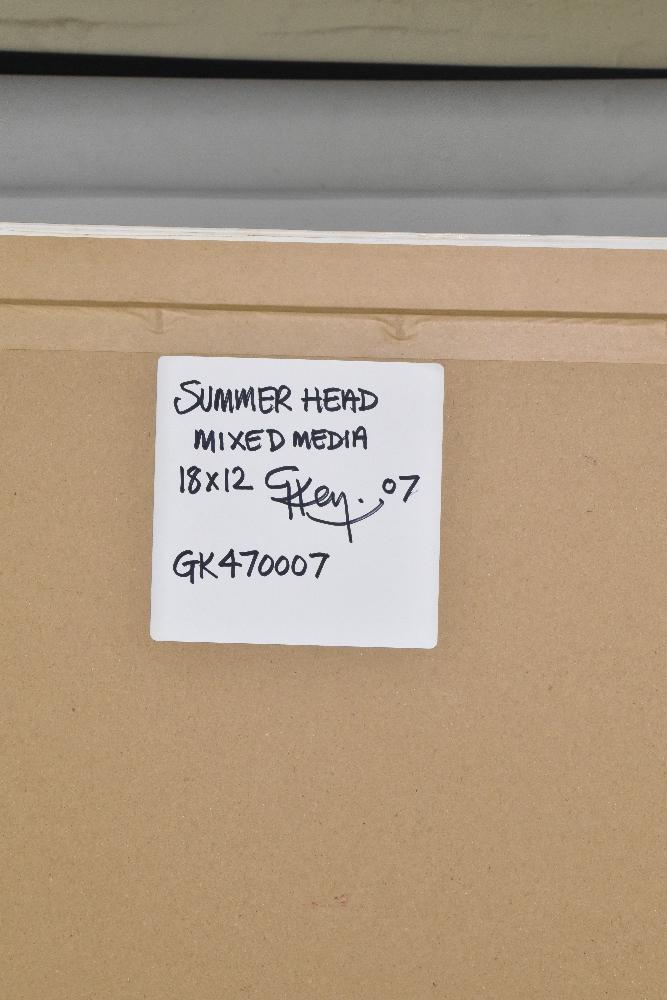 Lot 90 of 2039: GEOFFREY KEY (born 1941); mixed media, 'Summer Head', signed and dated 07 lower left, 45 x 32cm, bears label verso, inscribed GK 470007, framed and glazed. (D)