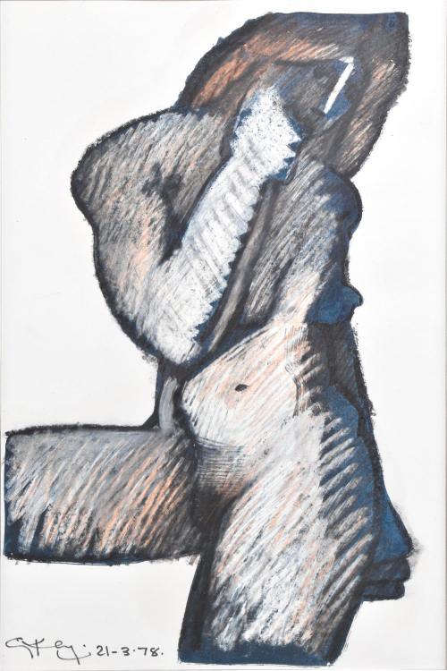 Lot 91 of 2039: GEOFFREY KEY (born 1941); mixed media, 'Seated Girl', signed and dated 21-03-78 lower left, 40 x 26cm, bearing GK 441078 label verso, framed and glazed. (D)