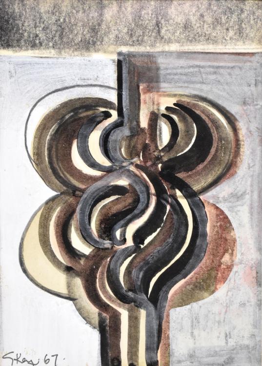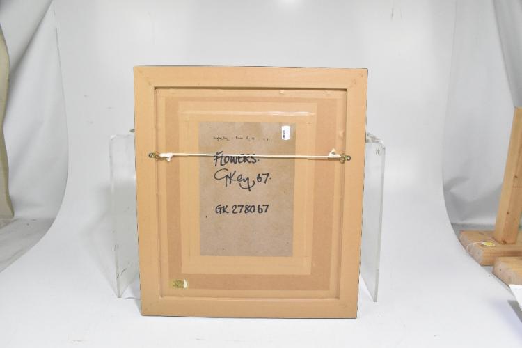 Lot 92 of 2039: GEOFFREY KEY (born 1941); mixed media, 'Flowers', signed and dated 67 lower left, 17 x 11.5cm, inscribed and GK278067 number to the reverse, framed and glazed. (D)