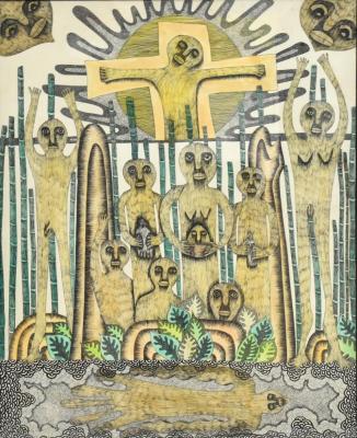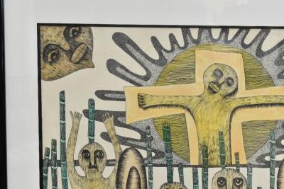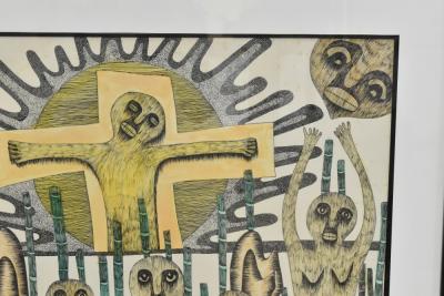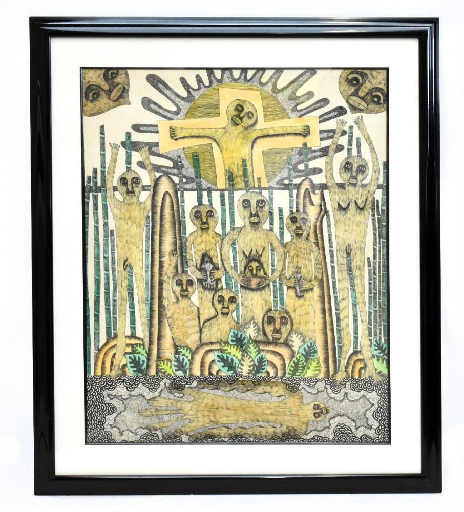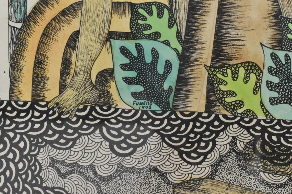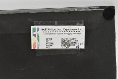 Lot 163 of 2039: PASTOR FUMERO (African); watercolour and ink, untitled #1, signed and dated 1992, with Portocarrero gallery label verso, 81 x 64cm, framed and glazed.