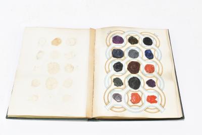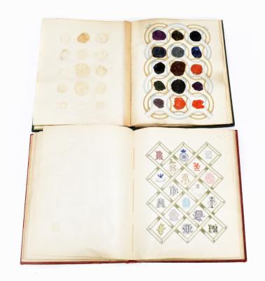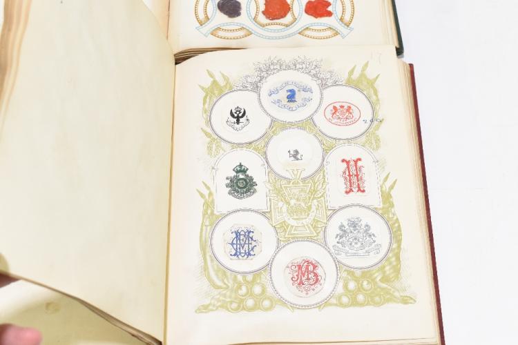 Lot 1066 of 2039: Two Victorian crests and monogram albums, containing a large collection of wax seal crests, paper monograms and emblems and Masonic examples.