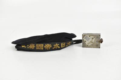 Lot 1412 of 2039: A Japanese Imperial navy cap with Tally bearing Japanese script and with label to interior, also a further Japanese tool/device, serial number 14098 (2).