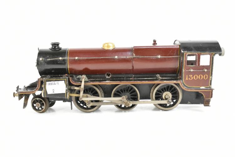 Lot 1620 of 2039: An early to mid-20th century clockwork locomotive, numbered 13000, impressed patent pending, length 29cm.