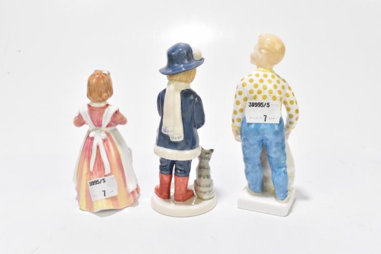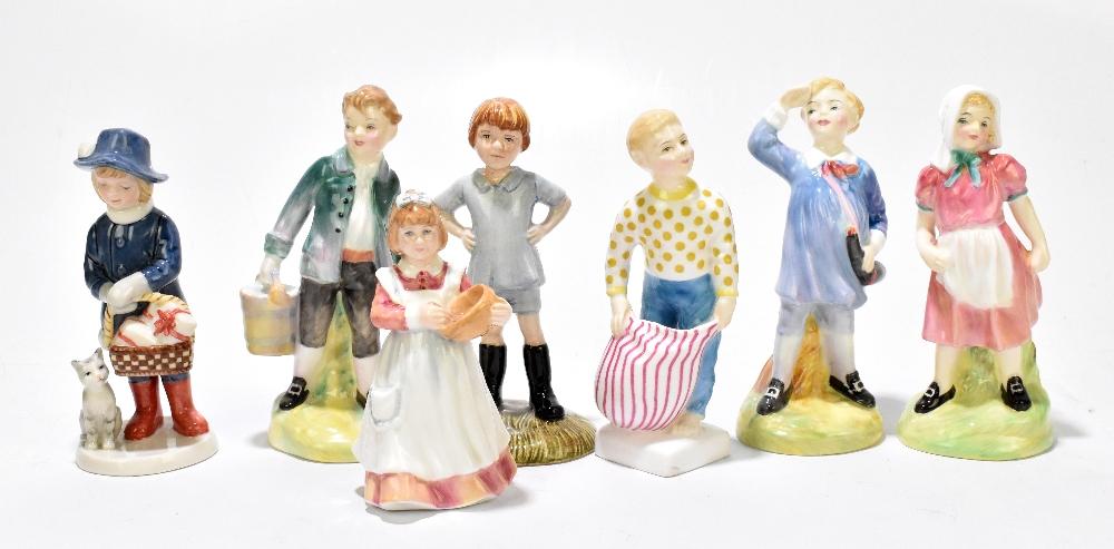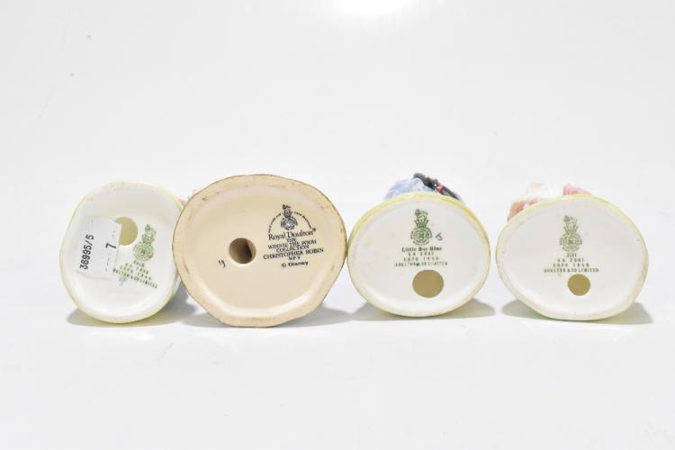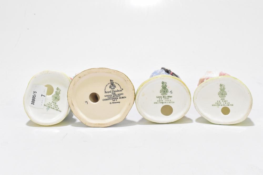 Lot 2126 of 2039: ROYAL DOULTON; six assorted figures comprising 'Christopher Robin' from the 'Winnie the Pooh Collection', HN2062 'Little Boy Blue', HN2262 'Lights Out', HN3650 'Mother's Helper', HN2060 'Jack', HN2061 'Jill', together with a Royal Copenhagen figure 'Anna' (7).