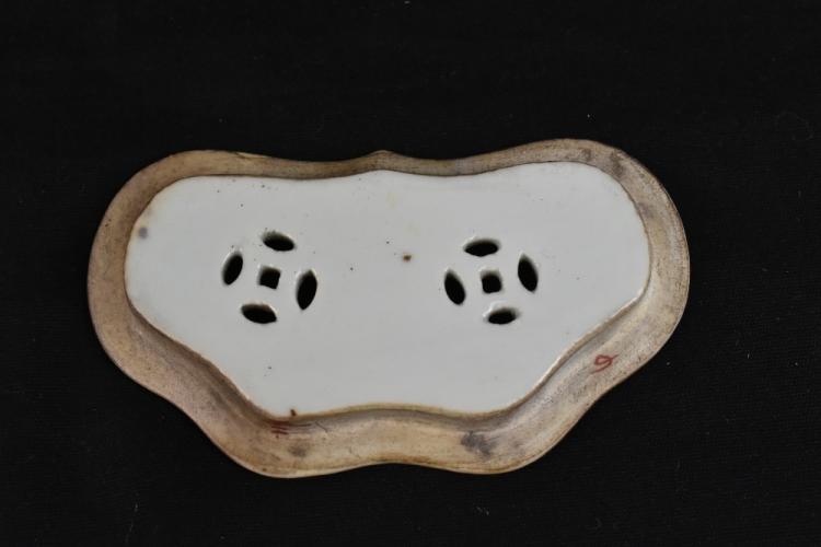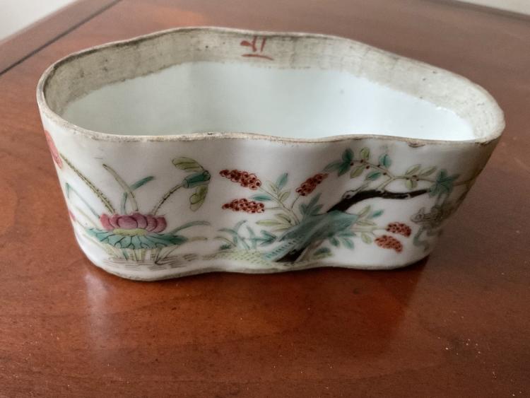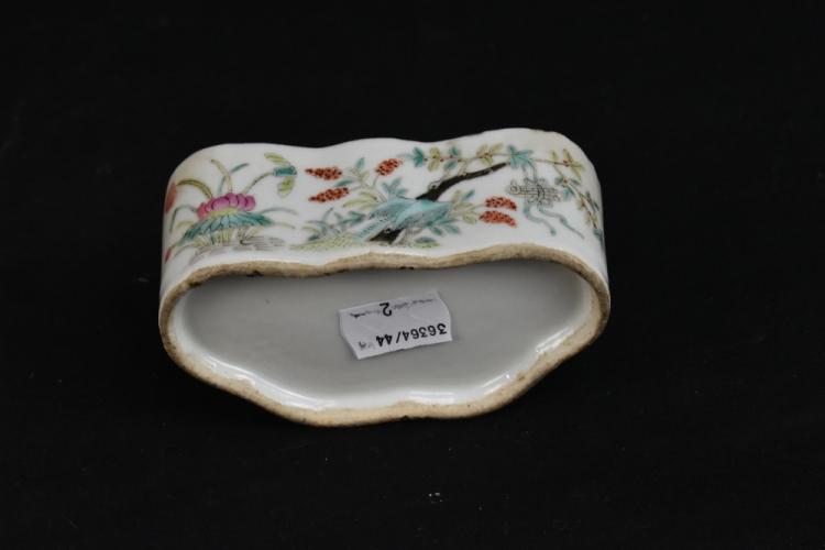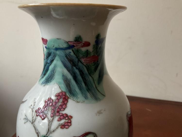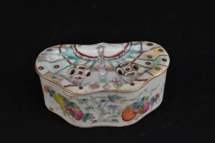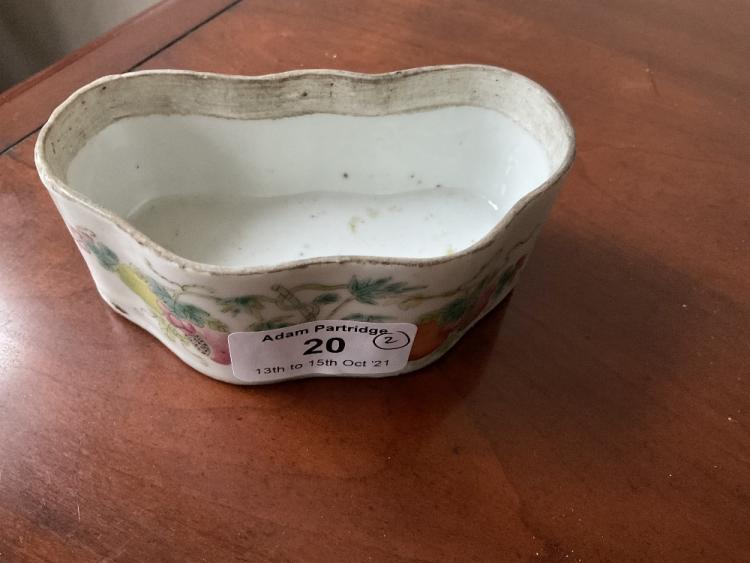 Lot 20 of 1739: A late 19th century Chinese Famille Verte vase decorated in enamels with figures in landscape setting, height 23cm and a Chinese Famille Rose porcelain shaped soap dish and cover, 11.5cm (2).
