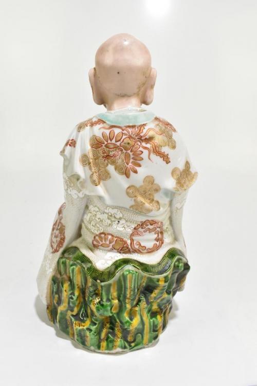 Lot 37 of 1739: A late 19th century Chinese figure representing a seated scholar wearing a gown with relief and gilded decoration, height 31cm.