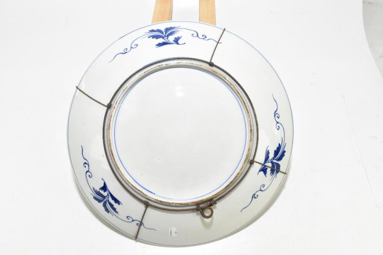 Lot 62 of 1739: A late 19th century Chinese blue and white wall charger, decorated with prunus flowers, diameter 45.5cm.