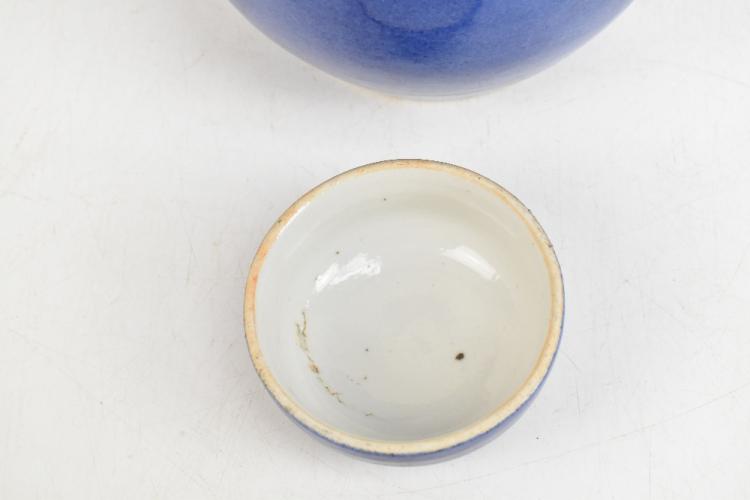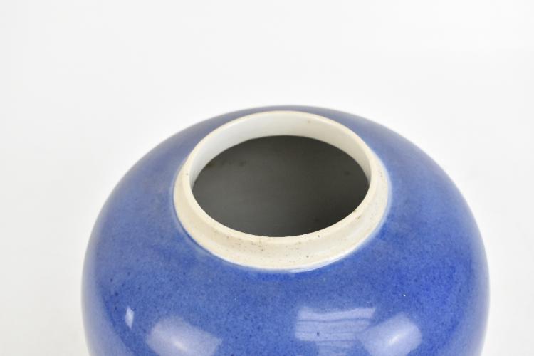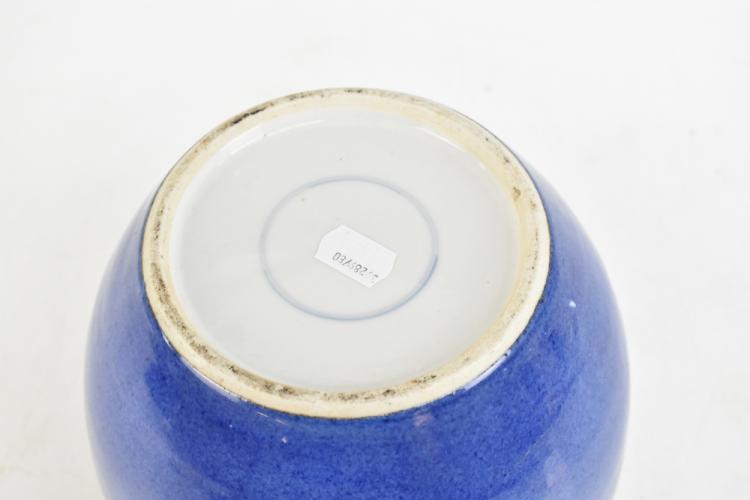 Lot 65 of 1739: An early 20th century Chinese porcelain ginger jar and cover, decorated in a powder blue glaze, with Kangxi double ring mark to base, height 25cm.