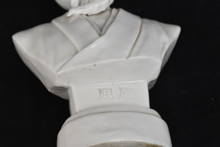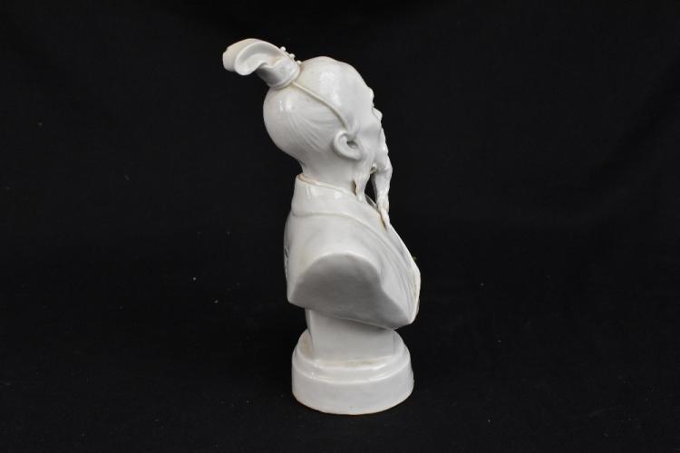 Lot 66 of 1739: A Chinese Blanc de Chine bust of a nobleman, two character seal mark to the front, height 18cm.
