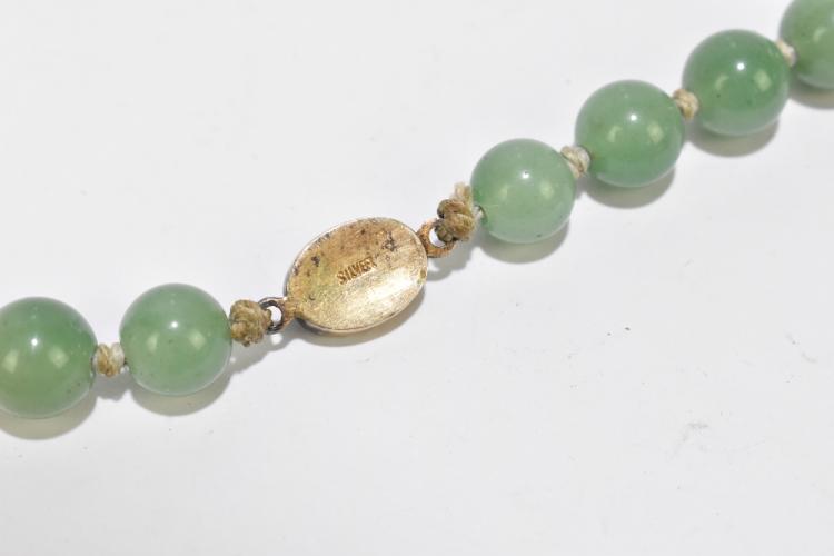 Lot 123 of 1739: A strand of jade and hardstone beads, the amber coloured beads set within cloisonne mounts, length 42cm.