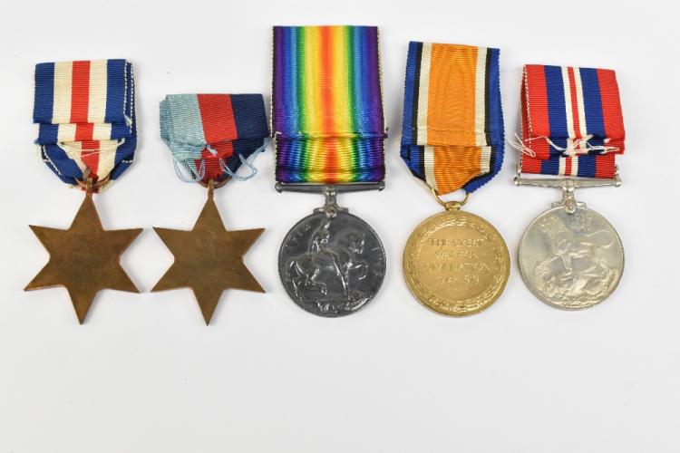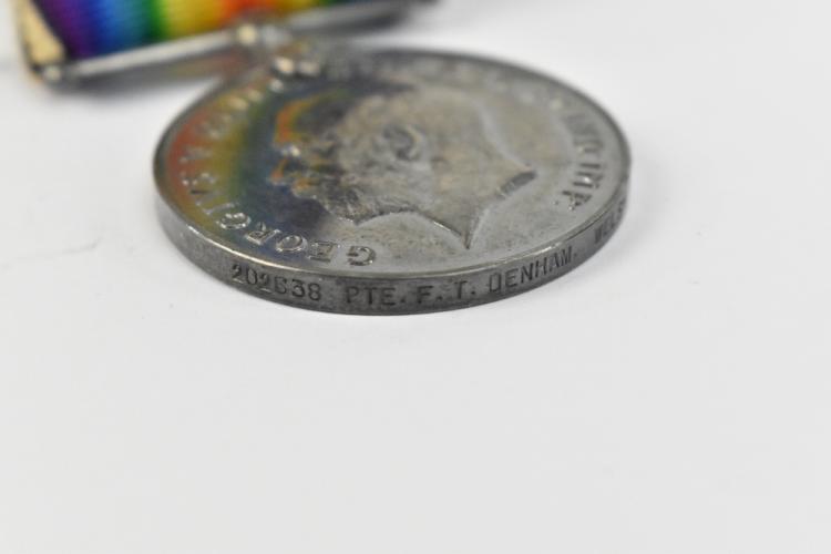 Lot 1302 of 1739: WWI & WWII, FATHER AND SON MEDAL GROUPS; 202638 Pte.F.T.Denham.Welsh.R., the War and Victory Medals both ascribed to the rim and in original box and the Defence Medal, 1939-45 Star and France & Germany Star awarded to W.Denham, boxed with Army Council card detailing the three medals.