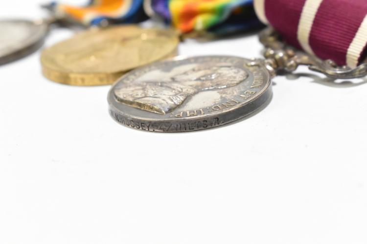 Lot 1303 of 1739: A WWI trio medal group to 200726 A.W.O.CL.1W.N.Hussey.Wilts.R.
