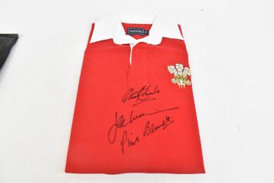 Lot 1342 of 1739: WELSH INTEREST; an autographed replica rugby jersey signed by Gareth Edwards, JPR Williams and Phil Bennett, with Island Cruises certificate of authenticity.