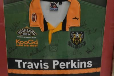 Lot 1344 of 1739: WOLVERHAMPTON RUGBY FOOTBALL CLUB; a signed 2003-2004 premiership season shirt, with 14 signatures, framed and glazed, 116cm x 64cm overall