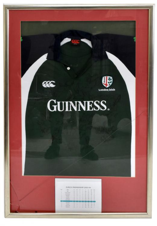 Lot 1345 of 1739: LONDON IRISH; a signed 2003-2004 Zurich Premiership season shirt, framed and glazed, 116cm x 73cm overall