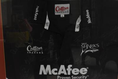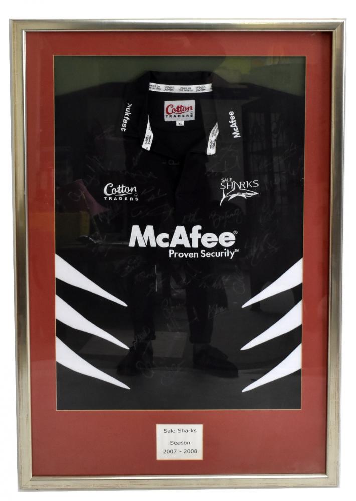 Lot 1348 of 1739: SALE SHARKS; a signed 2007-2008 season shirt, with 28 signatures, framed and glazed, 116cm x 75cm overall