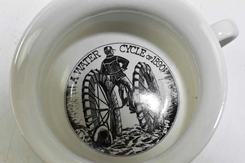 Lot 1530 of 1739: PORTMEIRION; six pieces of tableware decorated in 'Pomona' pattern, including three storage jars, oval bowl, etc together with three pieces of Portmeirion depicting two miniature chamber pots and a lidded trinket box, in various patterns comprising sailing ships, velocipedes etc (9).