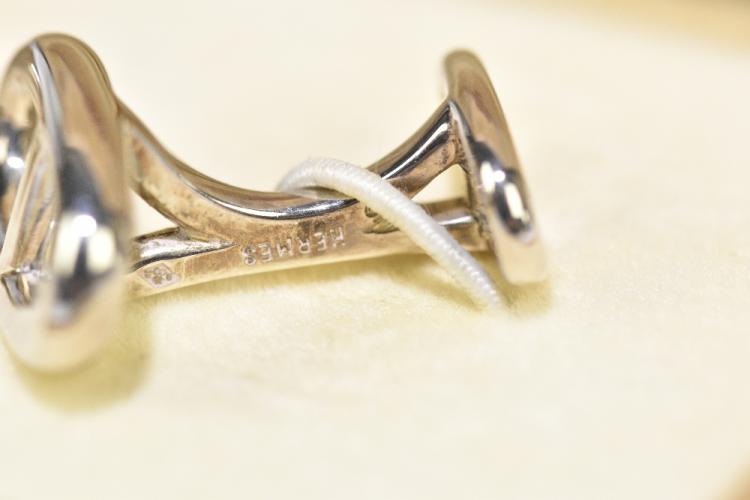 Lot 1 of 3058: HERMÈS; a pair of hallmarked 925 silver ellipse shaped Le Havre cufflinks in original Hermès cufflink box.
