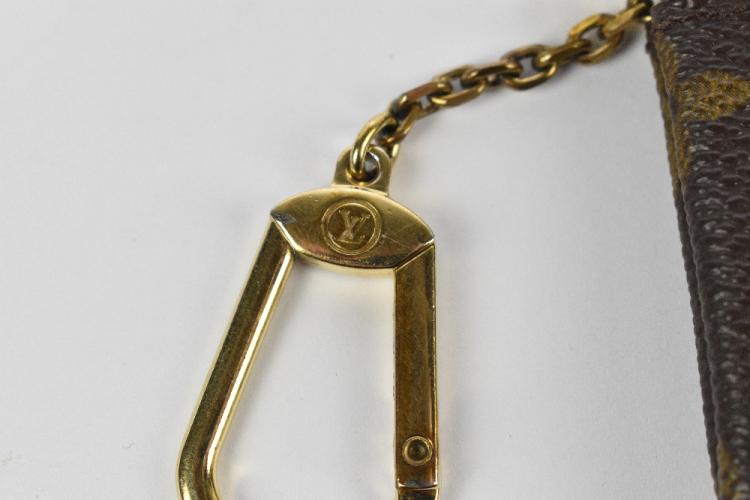 Lot 13 of 3058: LOUIS VUITTON; a brown leather Monogram Pochette Cles wallet/coin purse with gold tone stamped keyring and zip, 11.5 x 7cm.