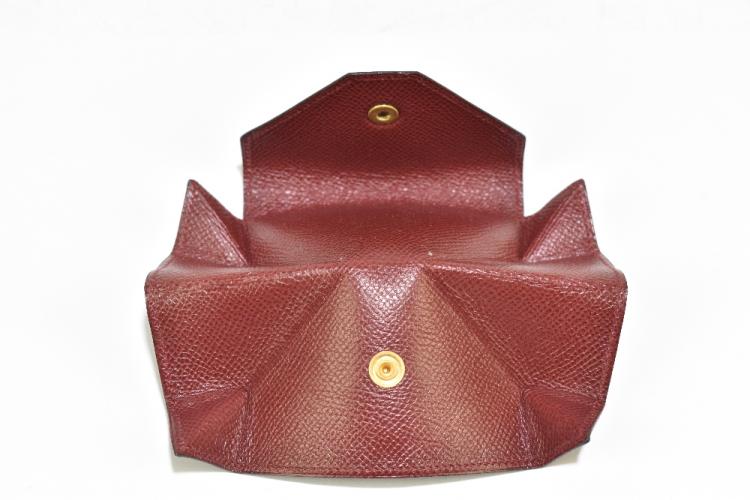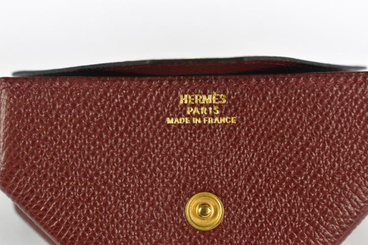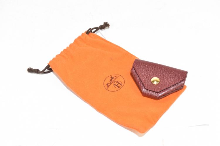 Lot 14 of 3058: HERMÈS; a burgundy Epsom red calfskin leather coin purse with a gold Cloud de Selle clasp, with dust bag, 9 x 6.5 x 1cm.
