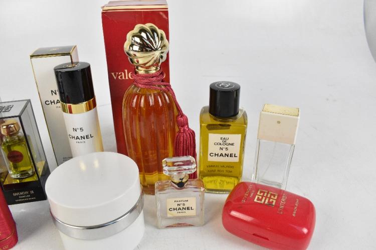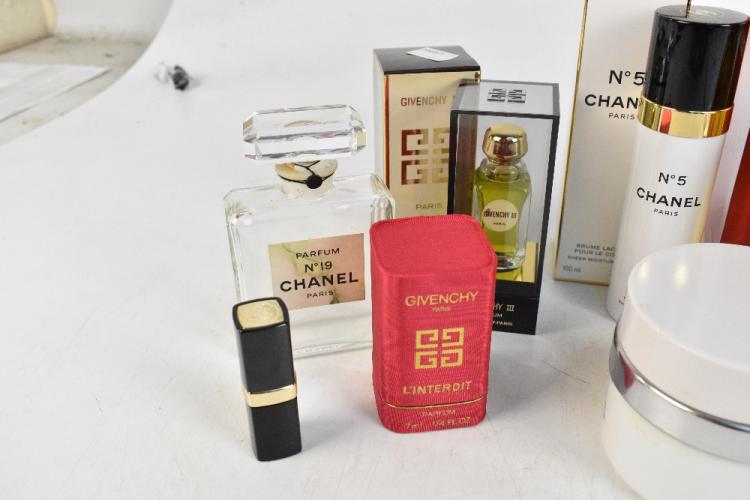 Lot 60 of 3058: CHANEL; a Chanel No.5 display store bottle/factice, and a No.19 body cream, five empty perfume bottles, a large Valentino 250ml factice and three Givenchy factice display items (11).