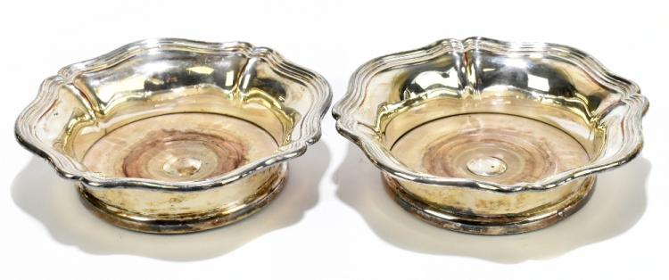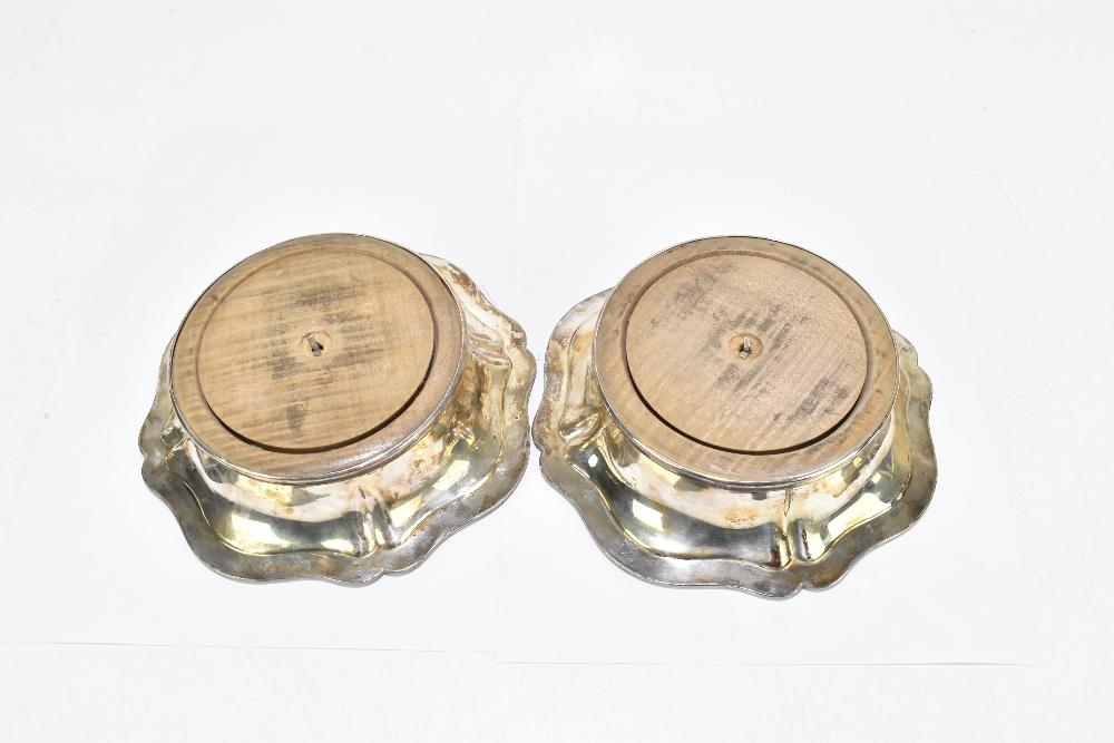 Lot 2018 of 3058: A pair of 19th century Sheffield plate wine coasters, with wooden liners, diameter 18cm, (2).