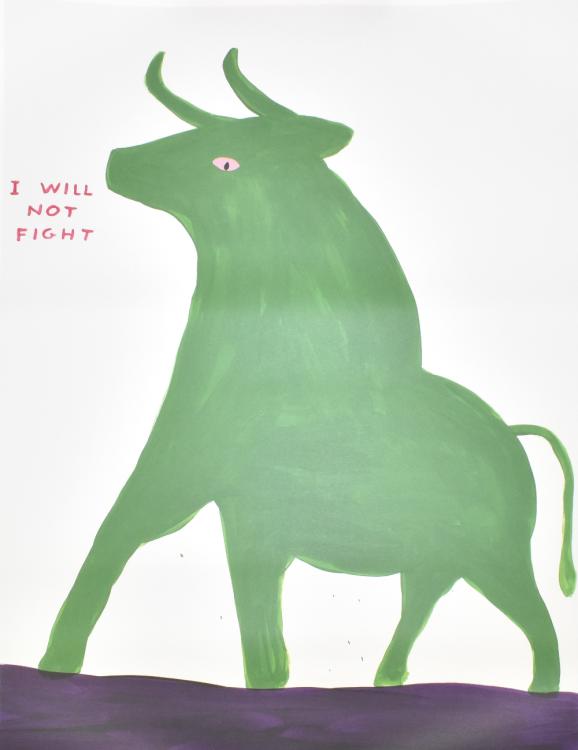 Lot 2828 of 3058: DAVID SHRIGLEY (born 1968); off-set lithograph, 'I Will Not Fight', 80 x 60cm, unframed.