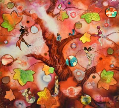 Lot 2834 of 3058: KERRY DARLINGTON (born 1974); a limited edition print 'Fairy Forest (red)' 75 x 75.5cm, with label verso for Buckingham Fine Art Publishers, with gilt signature lower right, framed. (D)