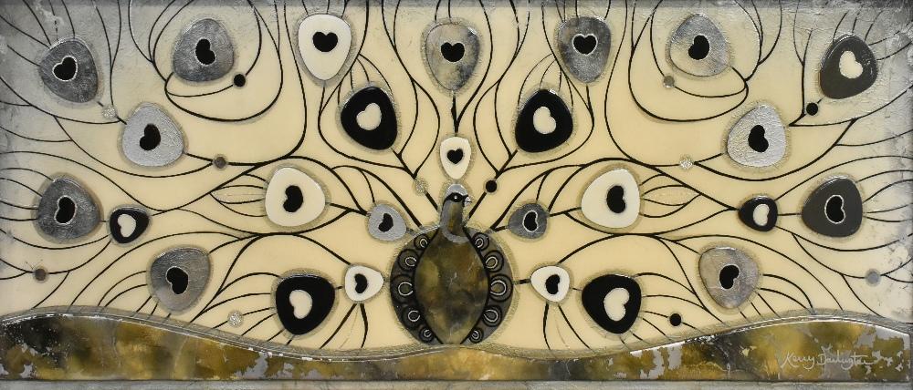 Lot 2835 of 3058: KERRY DARLINGTON (born 1974); a limited edition print, peacock, signed lower right, 39 x 100cm, framed. (D)