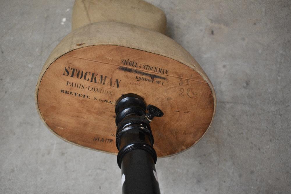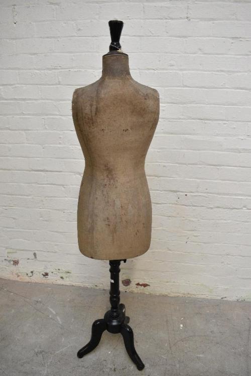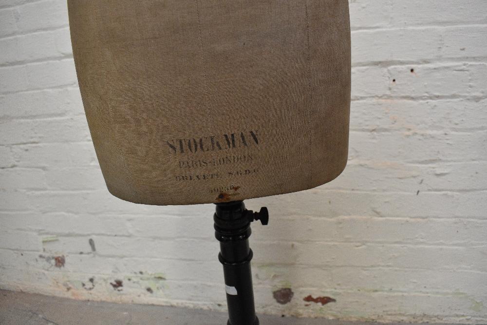 Lot 3282 of 3058: STOCKMAN OF PARIS AND LONDON; a tailor's dummy raised on ebonised adjustable stand, height 161cm. Footnote: from the estate of Stoke-on-Trent artist Tim Chitty.