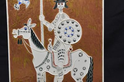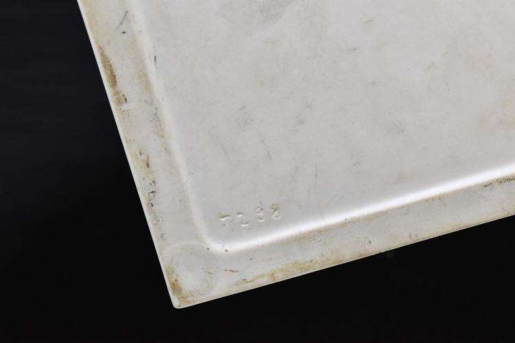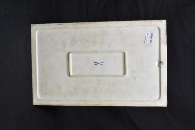 Lot 3366 of 3058: MEISSEN; a rectangular tile decorated with a figure upon horseback with birds in flight, painted marks, impressed number T298, with further indistinct impressed number to the reverse, 30.25 x 18.75cm.