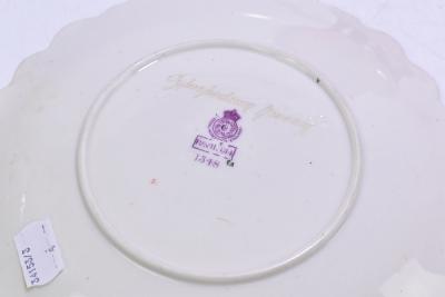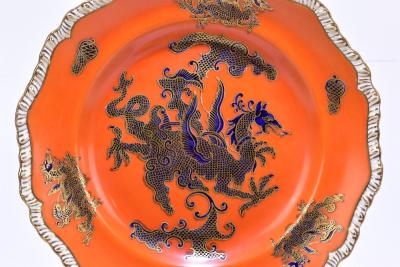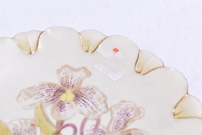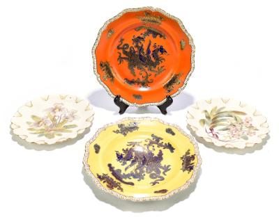 Lot 3512 of 3058: ROYAL WORCESTER; a pair of hand painted blush ivory plates, Cypripedium Rheum and Aeridies Quinqevlera, puce marks to the reverse, diameter 22cm, together with two early 20th century Masons ironstone plates with scalloped edges, each decorated with four claw dragons, (4).