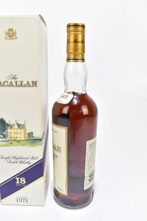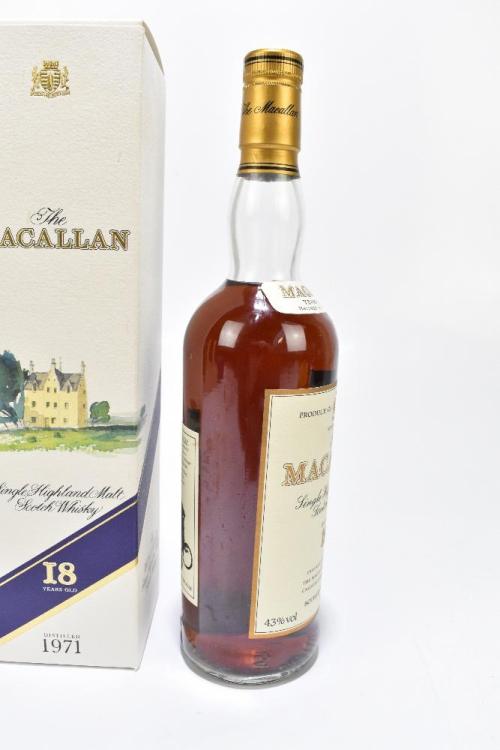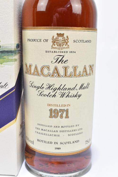 Lot 2 of 2131: WHISKY; a single bottle of ‘The Macallan’ Single Highland Malt Scotch Whisky distilled 1971,  18 years old, bottled 1989, boxed.