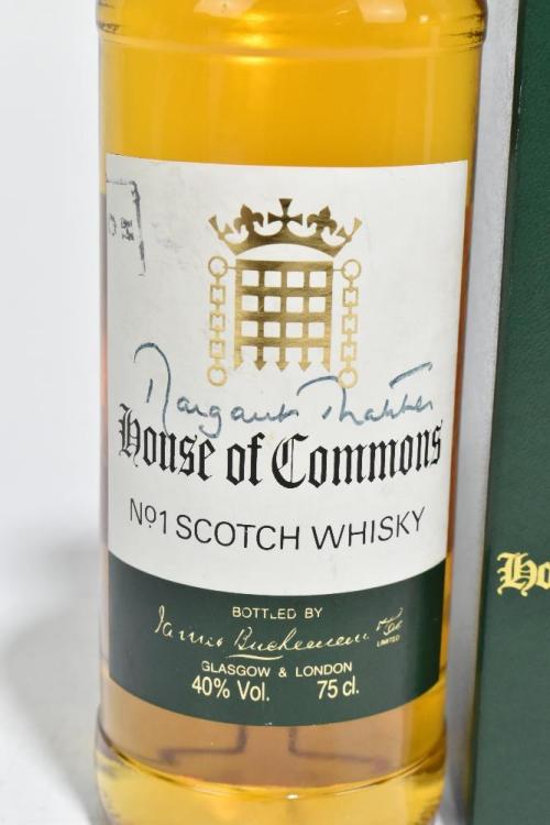 Lot 56 of 2131: WHISKY; a single bottle of House of Commons No. 1 12 Years Old Blended Scotch Whisky, signed to label by Margaret Thatcher, 75cl 40%, in presentation box.
