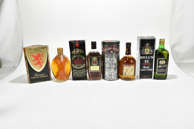 Lot 83 of 2131: WHISKY; four bottles including Dimple Scotch Whisky, Bells 12 year old blended Scotch Whisky, Stewarts Cream of the Barley 8 year old Scotch Whisky (4).