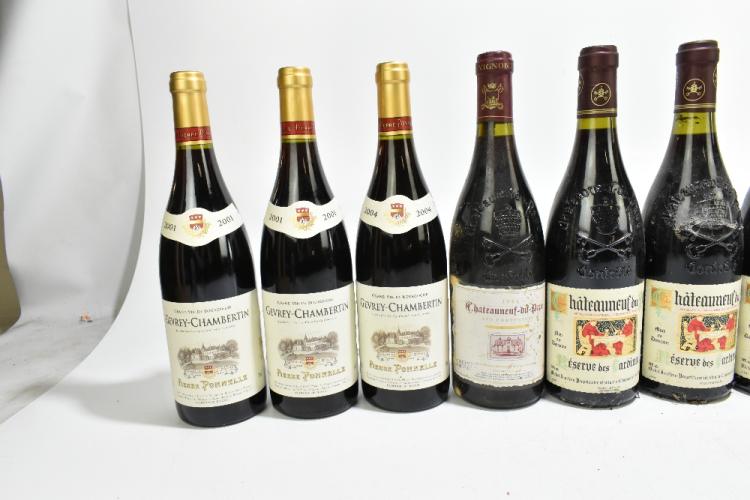 Lot 237 of 2131: FRANCE; eleven bottles of mixed wine including five bottles of Michel Jouffron Châteauneuf Du Pape Reserve Des Cardinaux, various years comprising 1995, 2000, 2001, 2003, also three bottles of Grand Vin De Bourgogne Gevrey-Chambertin 2001, etc (11).