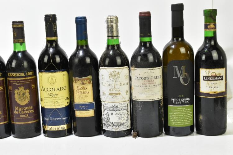 Lot 243 of 2131: Fourteen bottles mixed of red wine, including two bottles of Marques De Caceres Reserva 1987, one bottle of Castillo San Lorenzo Reserva 2003, one bottle of Marques De Riscal Rioja 2000, etc (14).