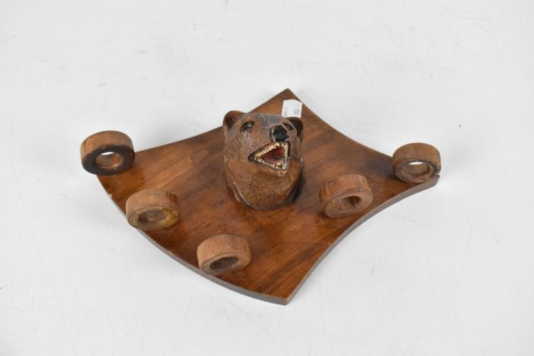 Lot 1007 of 2131: BLACK FOREST; a collection of assorted bears including a model of four on a sleigh, length 17cm, a table salt with moulded glass body and rampant bear, pipe rack, pipe stand, also a Dansk stainless steel model of a bear, etc. (10).