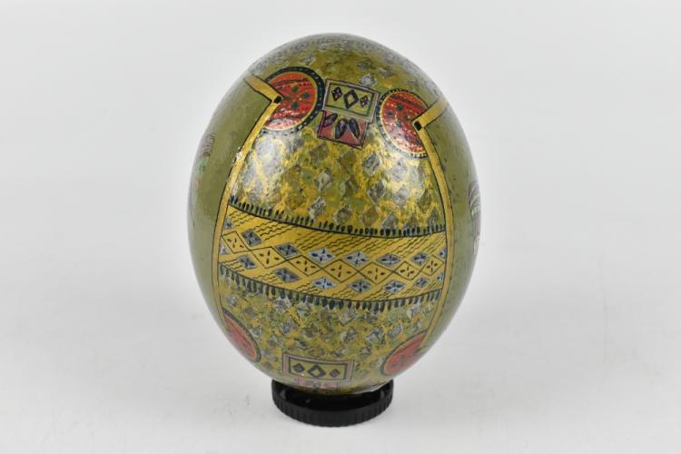 Lot 1028 of 2131: MICHAEL L. NUNN  (South Africa); a painted ostrich egg decorated with mythical animals within a device set main border, height approx. 16cm.