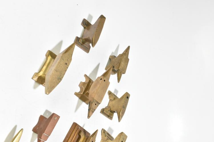 Lot 1058 of 2131: A collection of nineteen assorted metal watch/jewellery maker's anvils, largest example 7.5 x 11.5cm.