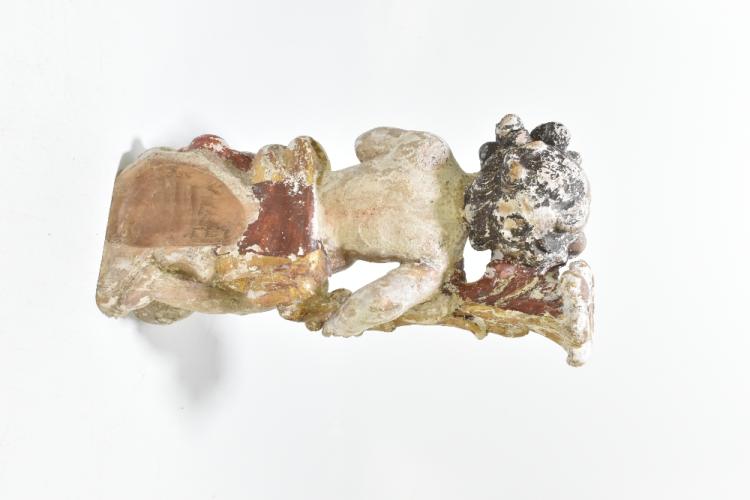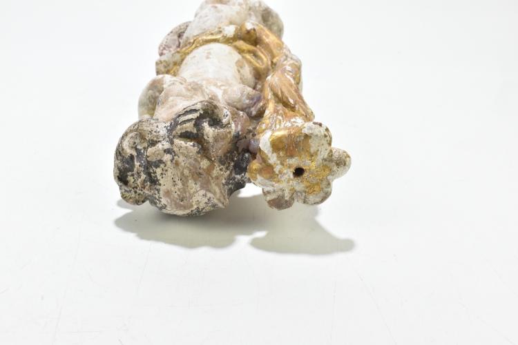 Lot 1064 of 2131: A decorative carved pine sculpture of a child beside a gilt column, height 38cm.