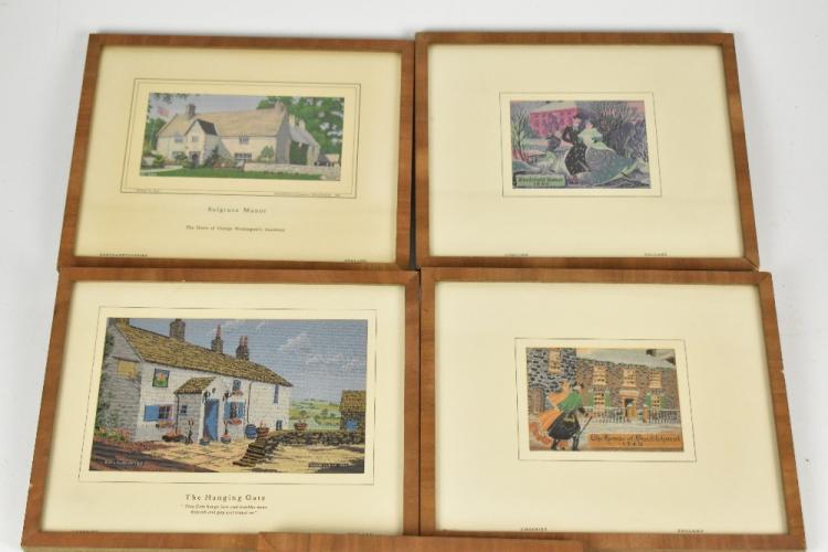 Lot 1079 of 2131: Five silk pictures comprising 'Sailing of the Mayflower', 'The House of Brocklehurst', 'The Hanging Gate', 'Hurdsfield House 1890', and 'Sulgrave Manor' (5).