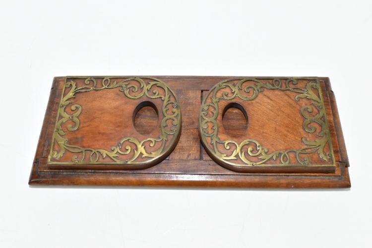 Lot 1093 of 2131: A late Victorian walnut brass bound adjustable book slide, length when closed 35.5cm.
